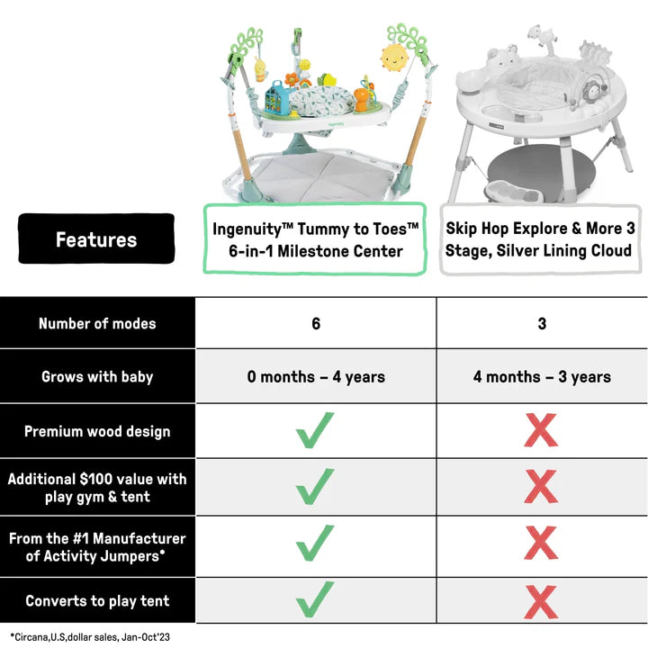 • Ingenuity's Tummy-to-Toes 6-in-1 Milestones Center gives you all the tools you need to build 6 different milestone-based activities from baby to big kid