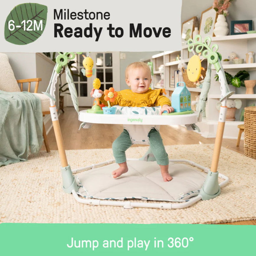 Ingenuity's first-ever all-in-one to enter the world of play is Tummy-to-Toes 6-in-1 Milestones Center! This multi-tasker has 6 different milestone-based activities for baby to big kid! Fun starts on day 1 with the the floor gym, which encourages reaching and grasping. The toy bar atop the foldable mat includes a detachable plush Bomby the bumblebee, a BPA-free cloud toy, and sun mirror. The soft, quilted, and padded mat gives baby a cozy place to play at home or on the go. The mat comes with a prop pillow for additional support and link loops to attach baby’s favorite toys. Inspire your little one's imagination while teaching cause and effect with the toy greenhouse! The greenhouse features lights, soft music, and nature sounds for baby to "water" and give "sunlight" to plants. The Milestones Center requires 3 AA batteries (not included) to operate. Baby will jump for joy in 360° play at 3 different toy stations. The activity jumper adjusts to 4 different heights. As your child grows, so does this center's features - which means standing is on the horizon. For standing moments, the jumper converts to a smooth surfaced activity table for open-ended play. The table's premium leg design provides a modern feel! The playhouse encourages independent play. Track baby’s progress with 12 monthly milestone cards and dry erase board. The Tummy-To-Toes 6-in-1 Milestones Center is the perfect all-in-one gender-neutral gift for children ages 0-48 months!