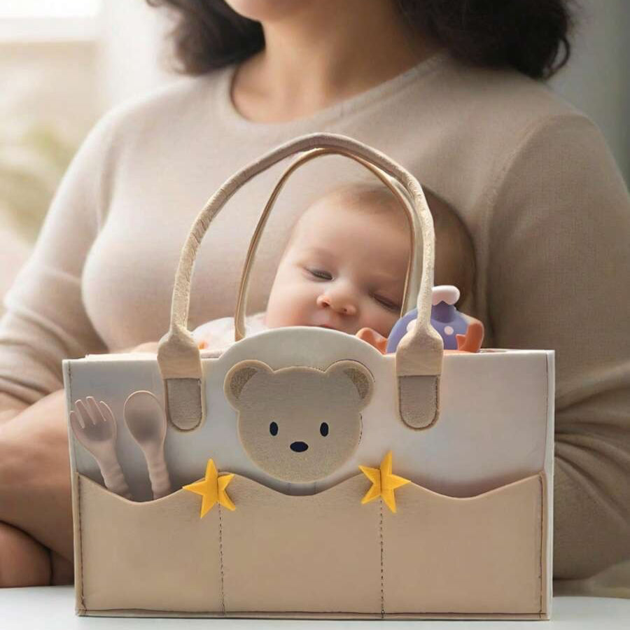 Felt Mommy Bag Cartoon Baby Outdoor Travel Storage Bag Diaper Storage Toy Storage Milk Bottle Storage Milk Powder Box Storage Paper Towel Wet Wipes Storage