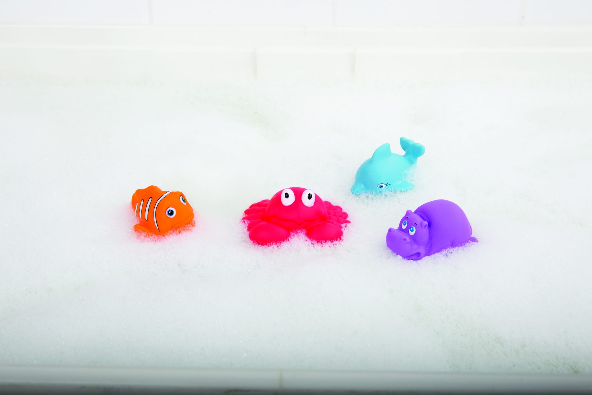 Come and swim in the sea with us! The under the sea characters offer loads of bathtime fun! The characters can be filled with water then squeezed to squirt for fun water play!