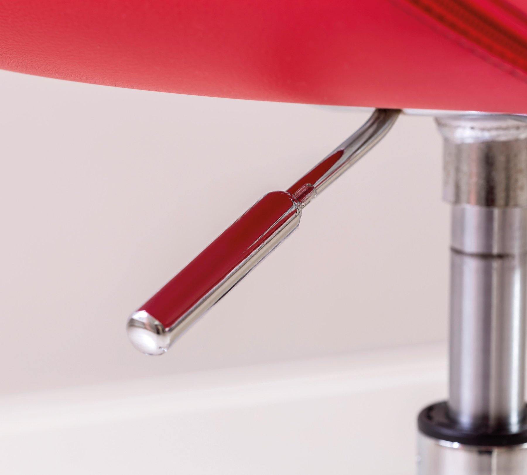 • Seat and backrest upholstery red leather 100% polyester.