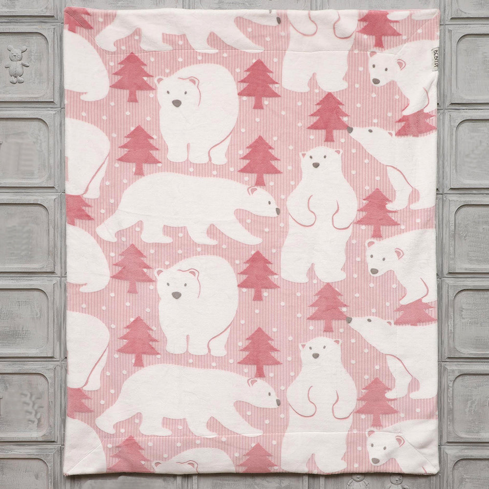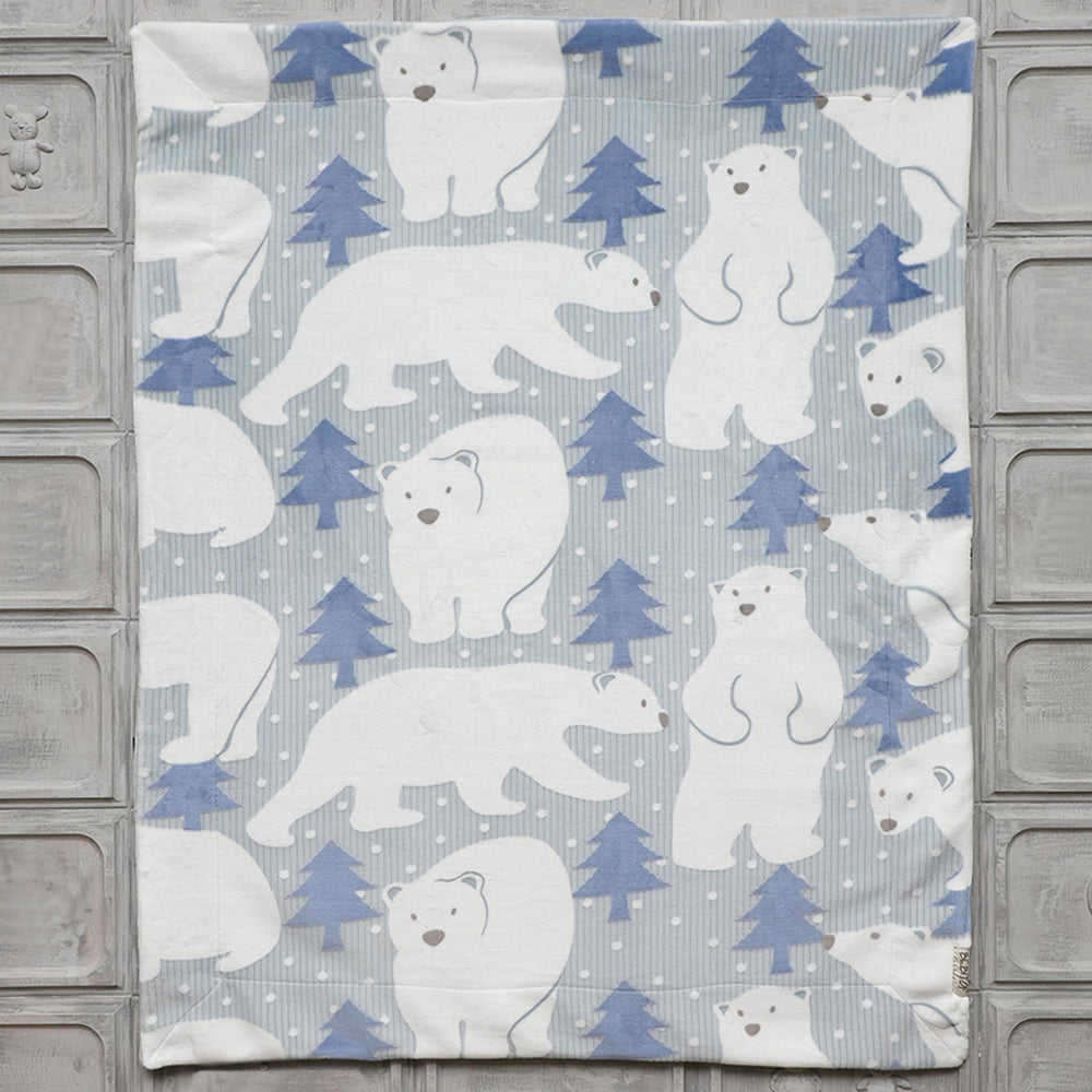 This baby blanket features a cozy knitted design lined with soft Welsoft fabric, combining warmth and comfort for your little one.