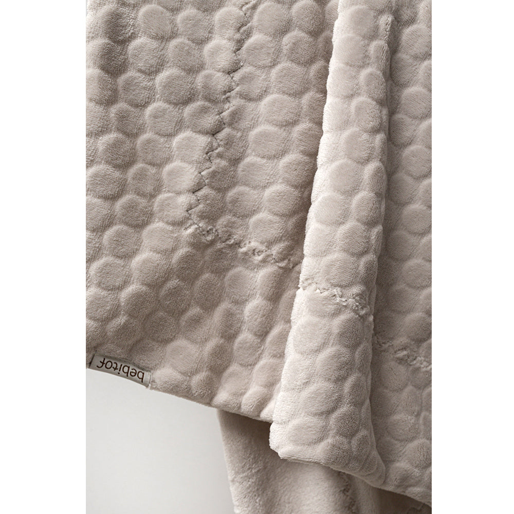 This baby blanket features a cozy knitted design lined with soft Welsoft fabric, combining warmth and comfort for your little one.