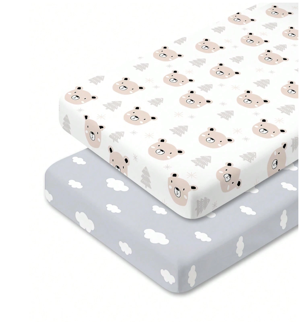 Baby Crib Sheets 2 Pack For Boys Girls, Fitted Sheet For Standard Crib And Toddler Mattress, Super Soft Microfiber Baby Sheet  60x120 cm