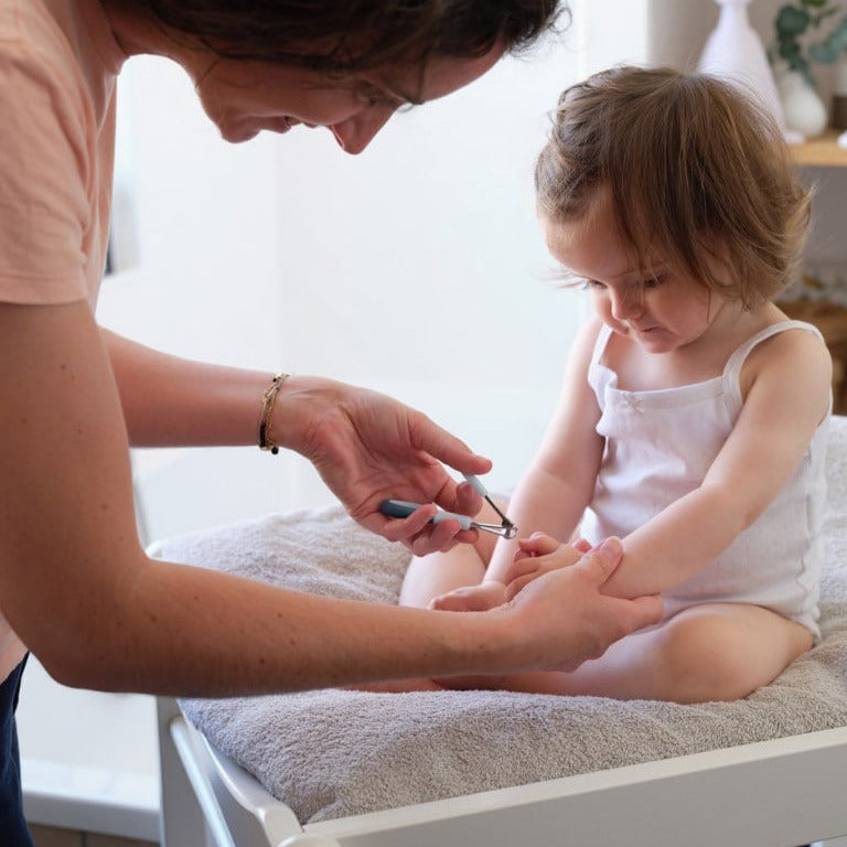 Find Bebe Confort's scissors in the base for regular baby care. The rounded ends and its soft, non-slip texture allow you to trim your baby's nails neatly and safely. The scissors feature a base that was created specifically to keep them out of baby's reach and to guarantee they stay completely hygienic.
