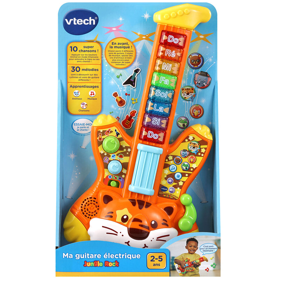 The Vtech Jungle Rock Tiger Electric Guitar is an engaging musical toy designed for children aged 2 to 5 years. This interactive guitar introduces kids to music through play, featuring catchy songs and creative sound options.