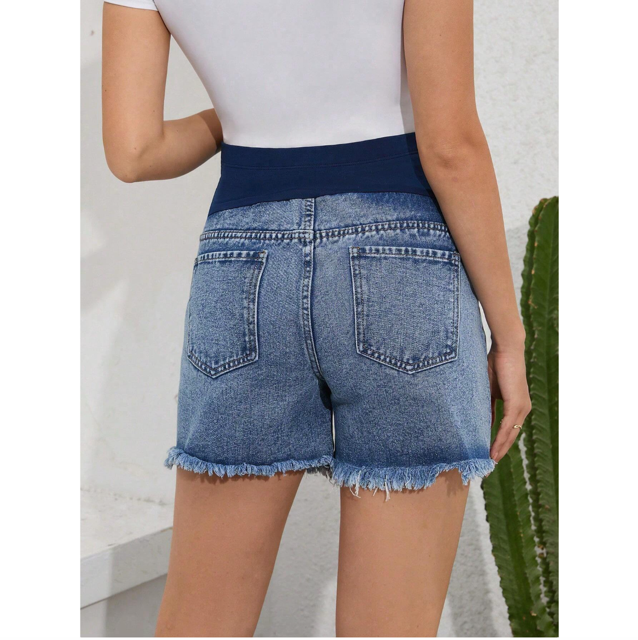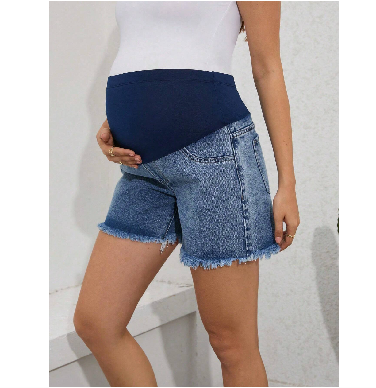 Maternity Frayed Edge Denim Shorts, Casual And Versatile For Spring/Summer
