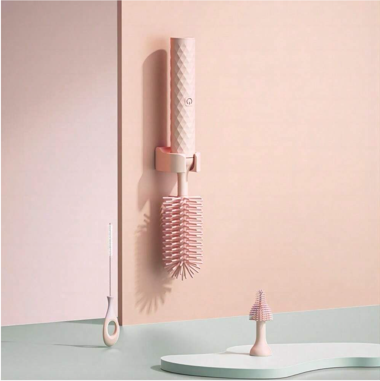 Set Electric Bottle Brush Kit, Includes Silicone Bottle Brush, 2 Nipple Brushes, 1 Straw Cleaner, 1 Wall Mount Holder, USB Rechargeable, 2 Color Options