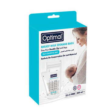 A box containing 30 easy-pour double zip storage bags that can be effortlessly stacked in the fridge. Keep your breast milk fresh and safe at all times.
