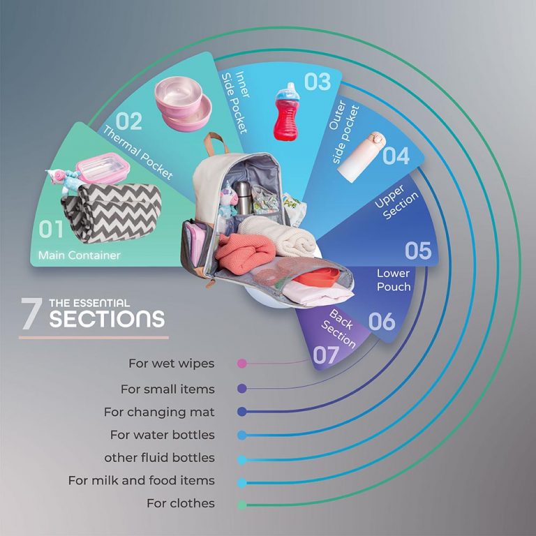 • IDEAL FOR TRAVEL- The backpack comes with various helpful travel accessories; an additional purse, a changing pad, and stroller clips. It also has a fully open front for easy organization.