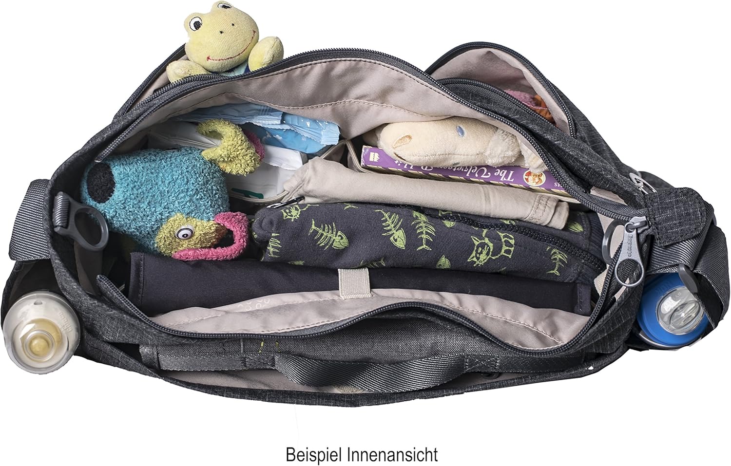 The Mondo bag is stylish, practical and come alive. Quick and easy access to the main compartment, two bottle holders to the side, as well as extra compartment at the front and the Okiedog parent zone with key holder and mobile phone pocket, adjustable shoulder strap make the difference. Our products are all PVC, Phthalate, AZO free and BPA (Bisphenol A) free. Includes accessory set: - clipix pocket attachment system for the pushchair - Accessories Bag, Insulated bottle holder, changing mat.