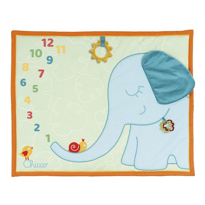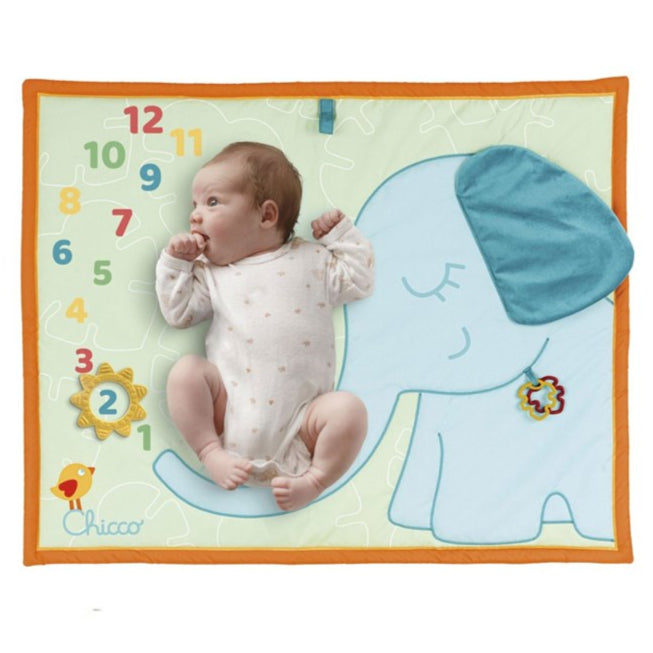 • During their first year, children grow up quickly, so thanks to this mat parents can take a picture, month after month, of their children by making them lie down on it, circling baby's age with the sun-shaped teething ring.