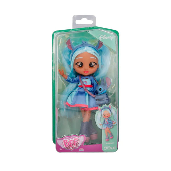 BFF dolls arrive in outfits inspired by popular Disney characters, with this version styled after Stitch. They support imaginative play by helping kids recreate favourite stories with a fashion focused look.