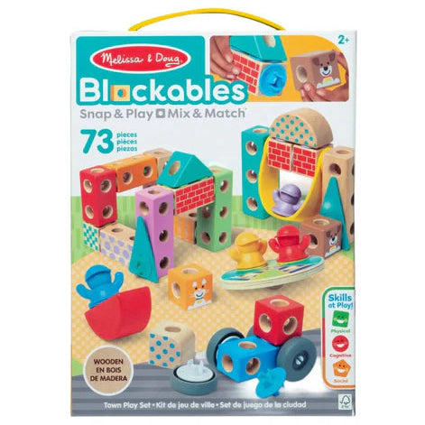 Melissa & Doug Blockables Town Play Set – 73-Piece Wooden Blocks & Connectors is a creative, screen-free building toy designed for preschoolers aged 2 and up. With solid wood blocks, interlocking connectors, and imaginative elements like vehicles, figures, and trees, this set encourages hands-on exploration, problem-solving, and storytelling through open-ended play.