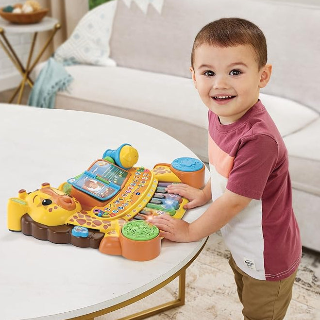 The Vtech Jungle Rock Mon Piano Girafe is designed for children aged 18 to 60 months, offering an engaging musical experience that encourages creativity and learning.
