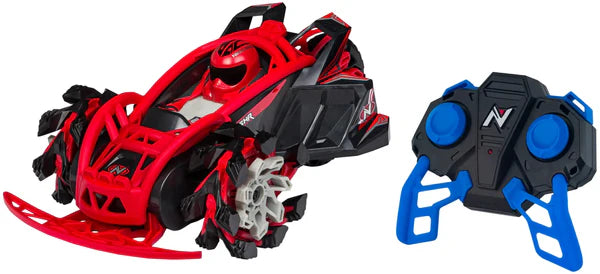 Nikko Rock CrushR Radio Controlled is engineered for terrain domination with patented Auto-Expanding wheels for exceptional grip. Reticulating arms automatically extend, ensuring unparalleled performance. Dual motor 4-wheel drive provides power and traction, conquering diverse terrains. The vehicle features a powerful built-in 9.6v LiFePo4 USB rechargeable battery for quick charging and extended playtime out of the box. The Nikko remote control operates on 2.4GHz transmission technology, supporting interference-free fun for up to 10 players racing simultaneously. Nikko upholds its reputation for quality, innovation, and efficiency through the latest technologies and extensive durability testing. The product is fully assembled and suitable for ages 6 and above, with specifications including a 13" size, patented Auto Expanding Wheels, and a 2.4GHz transmitter.