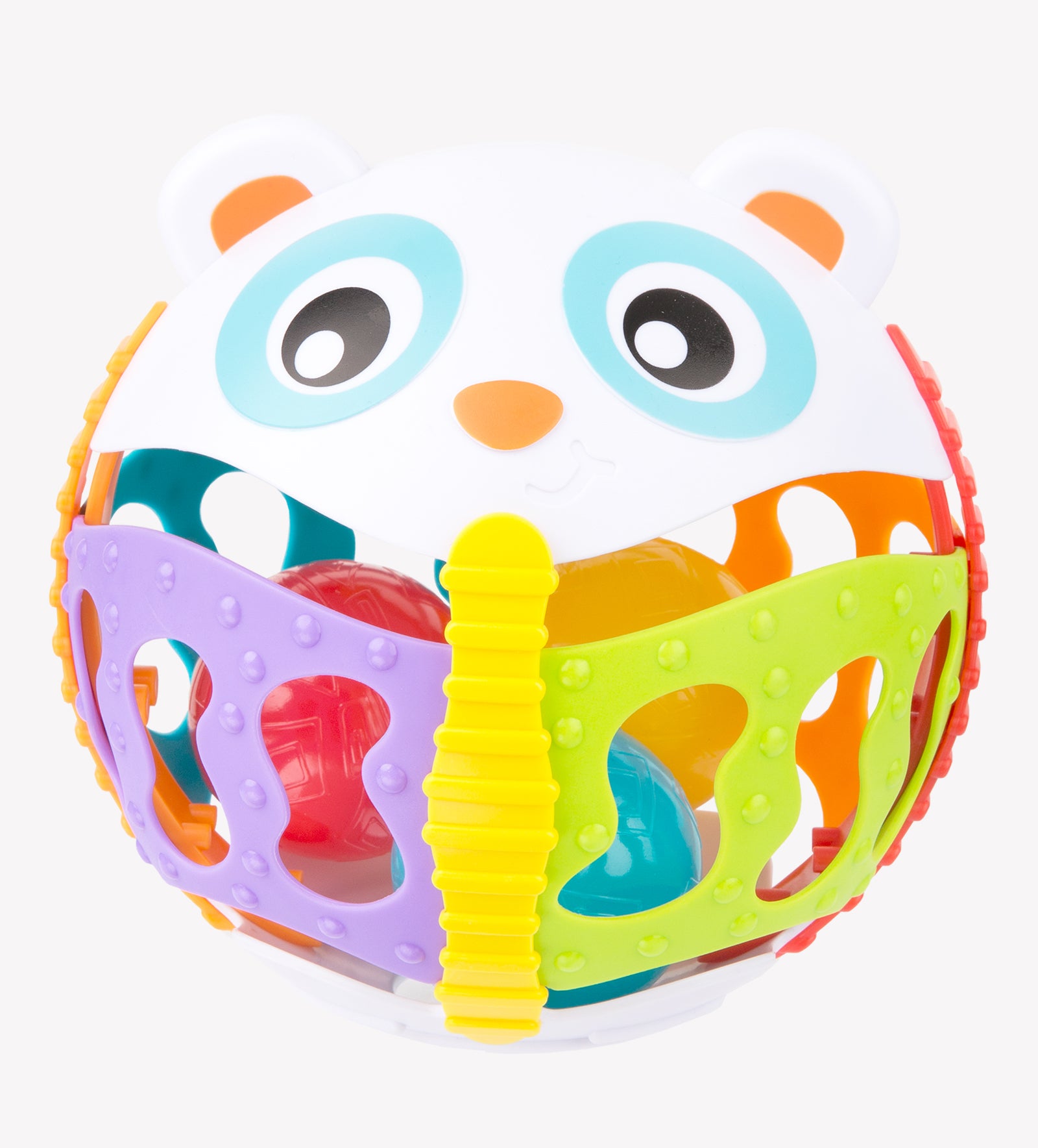 Click clack, click clack! The Panda Activity Ball is perfect for curious little explorers. The three textured balls inside stimulate baby’s auditory development as they listen to the rattling roll of the balls and the click clack beads. Both fine and gross motor skills are encouraged when baby grips, lifts and shakes the ball, teaching cause and effect. Little fingers will also love exploring the bumps and ridges of the soft bendable panels. With so many activities, this panda ball will be a toy baby will want to roll about with.