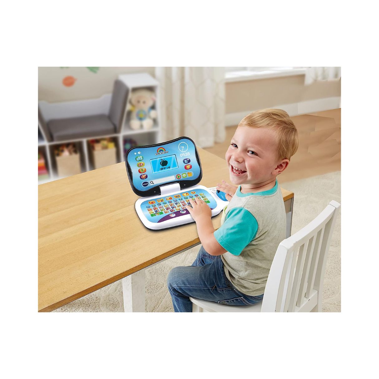• The Toddler Tech Laptop is the perfect interactive learning toy designed to introduce young children to essential early computer skills while providing a fun and engaging educational experience. With over twenty captivating games spanning five categories, including Alphabet & Letters, Patterns & Shapes, Numbers, Logic & Matching, and Music & French, this toy encourages cognitive development, logical thinking, and motor skills in children aged 2 years and up. Its customisation feature allows kids to create their own character and wallpaper, making learning personal and enjoyable. The user-friendly design, featuring an easy-to-use ABC keyboard, mouse, and backlit screen, ensures seamless interaction and promotes independent exploration.