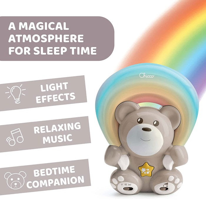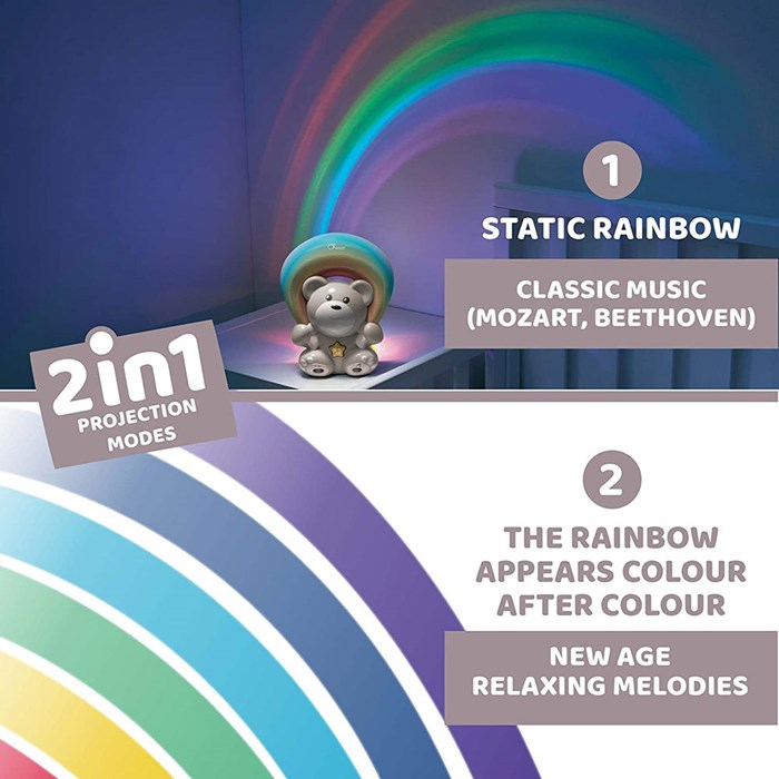 A bedside table projector with a surprising and customizable rainbow light effects on the wall and the ceiling.