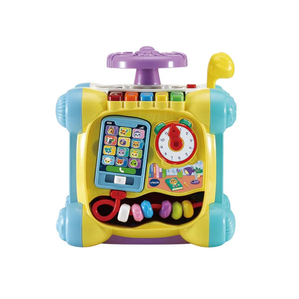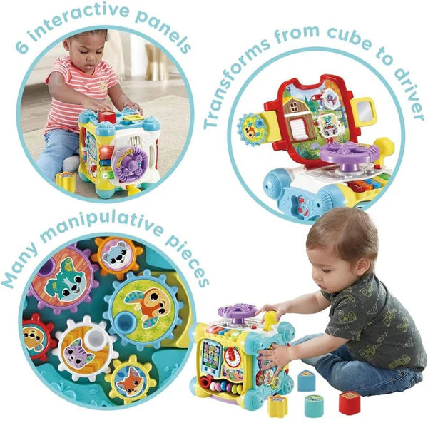 The VTech Twist and Play Cube is an engaging activity cube designed to stimulate babies and toddlers through interactive play. With five sides of fun, this cube encourages exploration and development of essential skills.