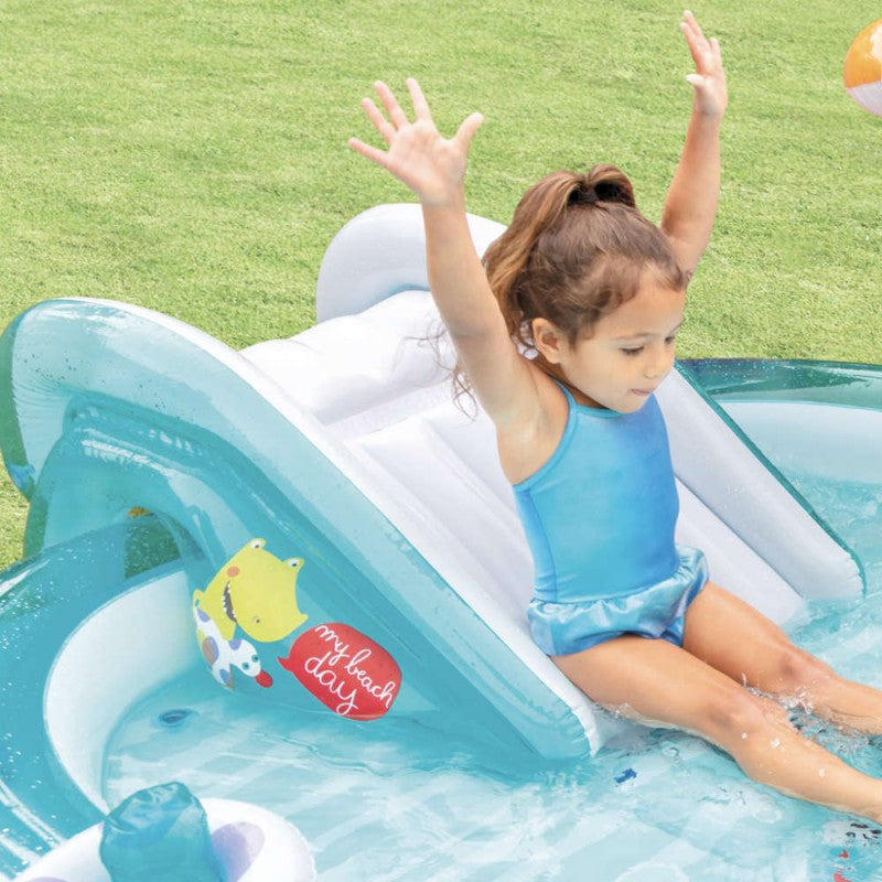 With the Alligator INTEX play area , offer your children an excursion in total immersion in the Amazonian flora. This inflatable play area with its vibrant colors will keep your little ones busy all summer long, to the delight of children and parents.