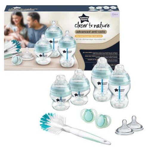 • Newborn Starter Kit: This kit contains 2x 150ml and 2x 260ml Advanced Anti-Colic bottles with slow flow teats, 2x 0-6m night-time soothers and 1x bottle and teat brush.