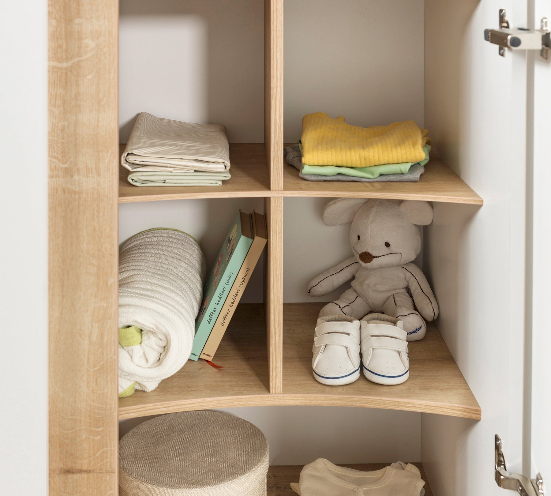 The shelf unit at the back of the 3-drawer section offers practicality for the items you want to have at hand. Thanks to the lower opening area above the drawers, you can change your baby's diaper without moving away from the bed.