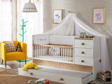 Natura Baby Sl Growing Baby Bed, which offers functional use with its drawer design and wheeled lower parent bed, is suitable for use in later ages thanks to its growing feature. You can store towels, bed linen, pajamas or diapers in the drawers of the bed, which has a caisson that can be divided into two.