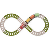 • It includes 18 pieces to build the playset: 1 locomotive, 3 wagons, 3 shapes, 1 crossroad, 10 straights