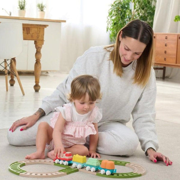 Rich train playset to build and play with, to free children’s creativity and building skills… made of sustainable materials!