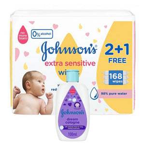 Baby Wipes Extra Sensitive Pack of 2+1 Free with Cologne Dream 100ml FREE