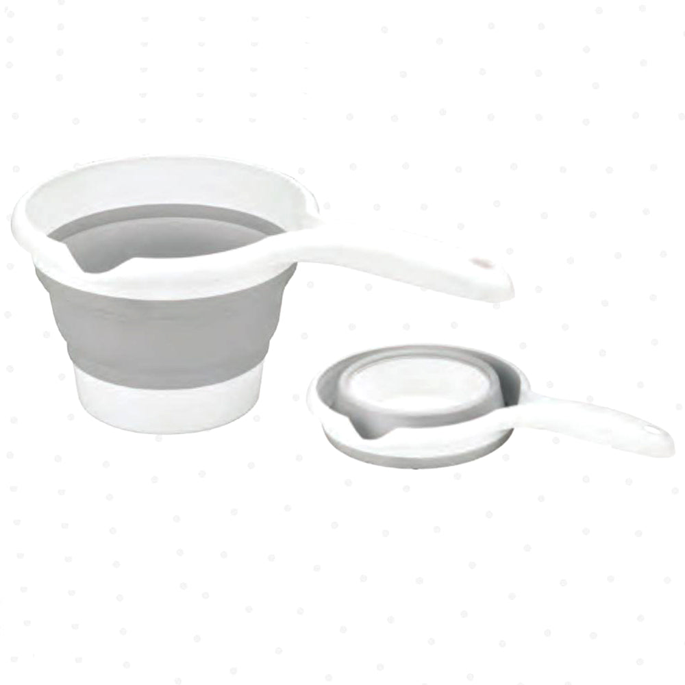 The bowl takes place in your bathroom with its 1.1 liter collapsible baby bucket or in other words the coachero mini size. It has a volume of 1.1 liters with a height of 11 cm in its open size. With its folding feature, it reaches 4 cm in height. You can hang it in your bathroom thanks to the hanging bracket. BPA-free ingredients are used in our product. You can also use it as a baby bucket in your children's bathroom. The white areas in the product are made of hard plastic, which is a polypropylene material, and the gray areas are made of silicone. Clean up after use disclaimer.