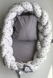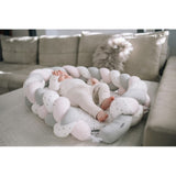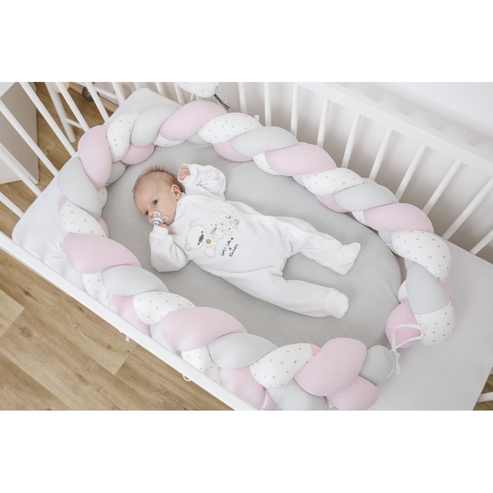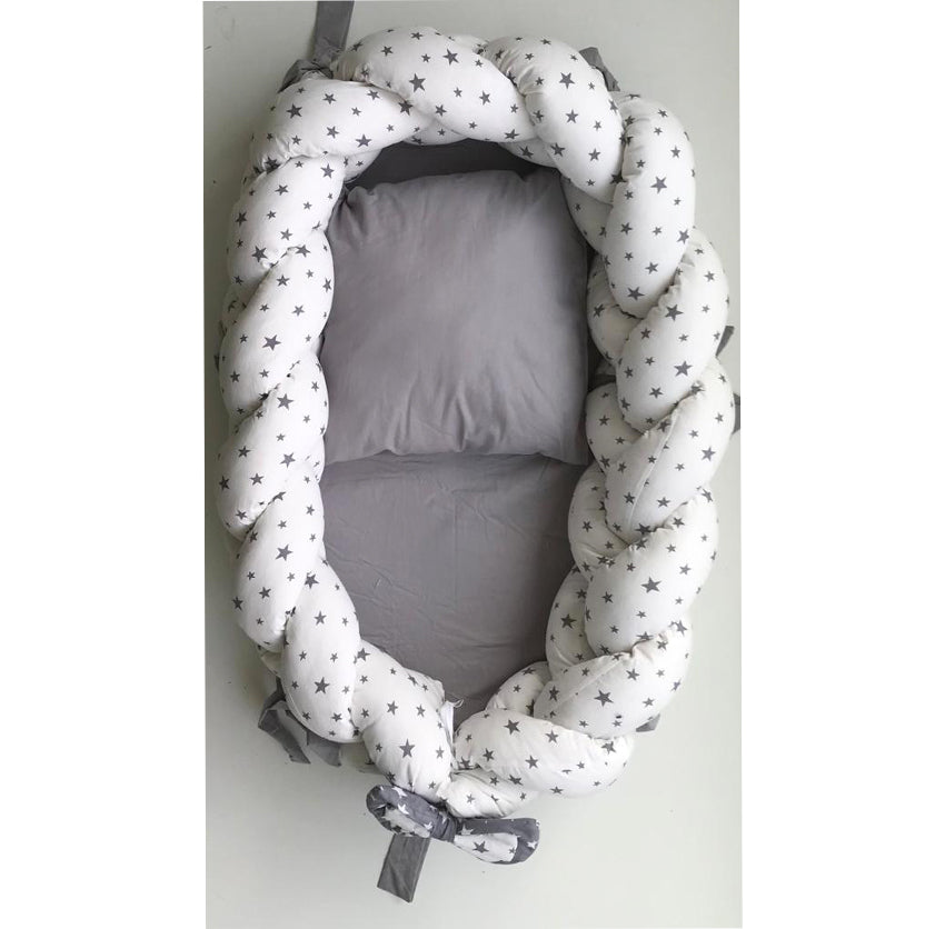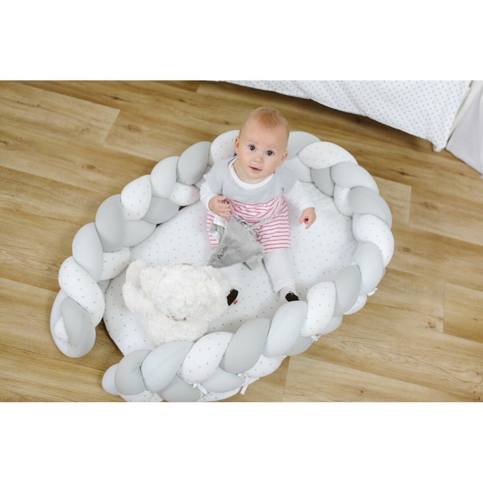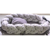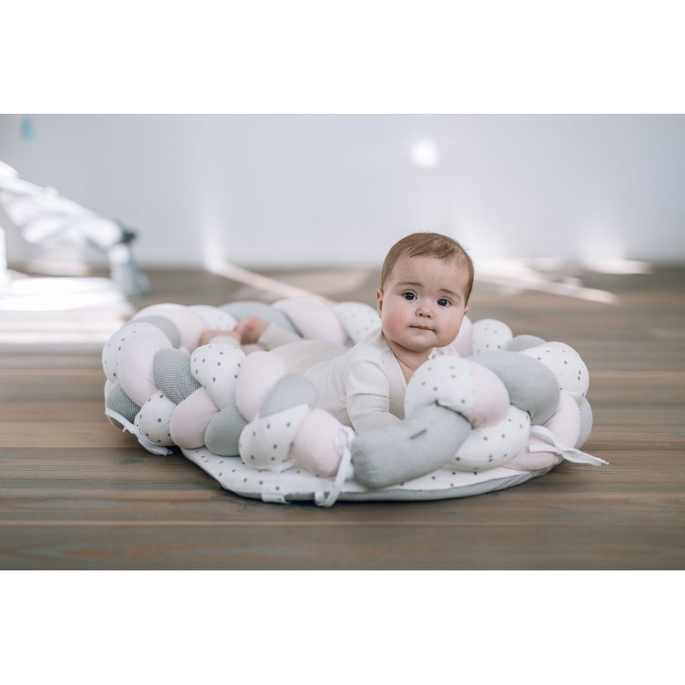 Braid can be separated from the bottom and thanks to this characteristic, baby nest can be used on three different ways: as a baby nest (braid is attached to bottom), as a bed bumper on baby bed, on a crib, on your bed, on sofa or anywhere else (only braid) – you will protect a child and provide him peacefull sleeping, as a playquilt (only bottom or braid with bottom) – braid can make sure the toys will stay on its place or you can remove it and provide a child more place for playing.