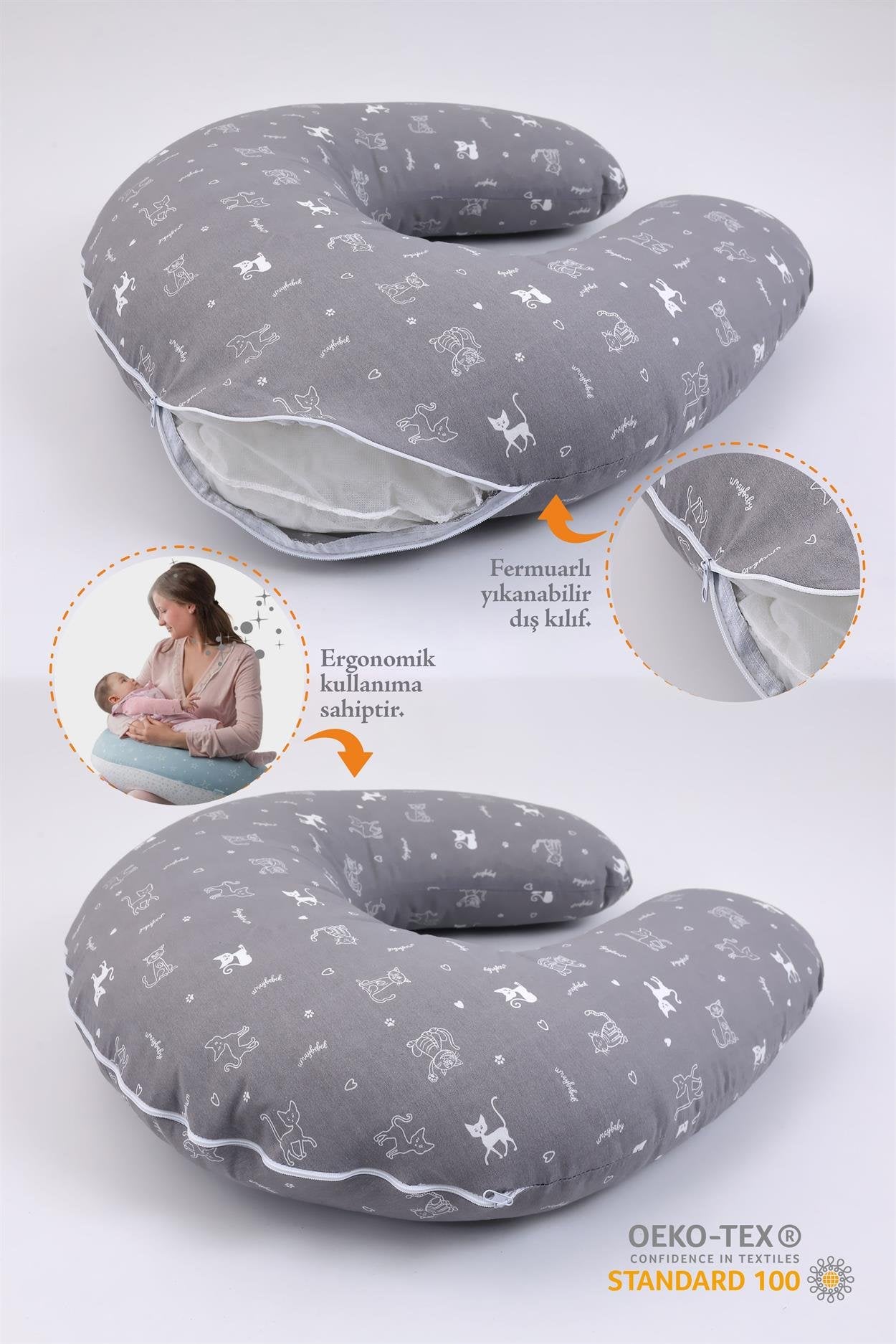 Breastfeeding Pillow Gray Cat