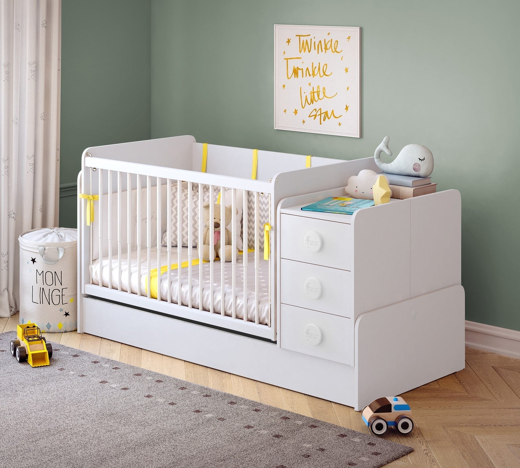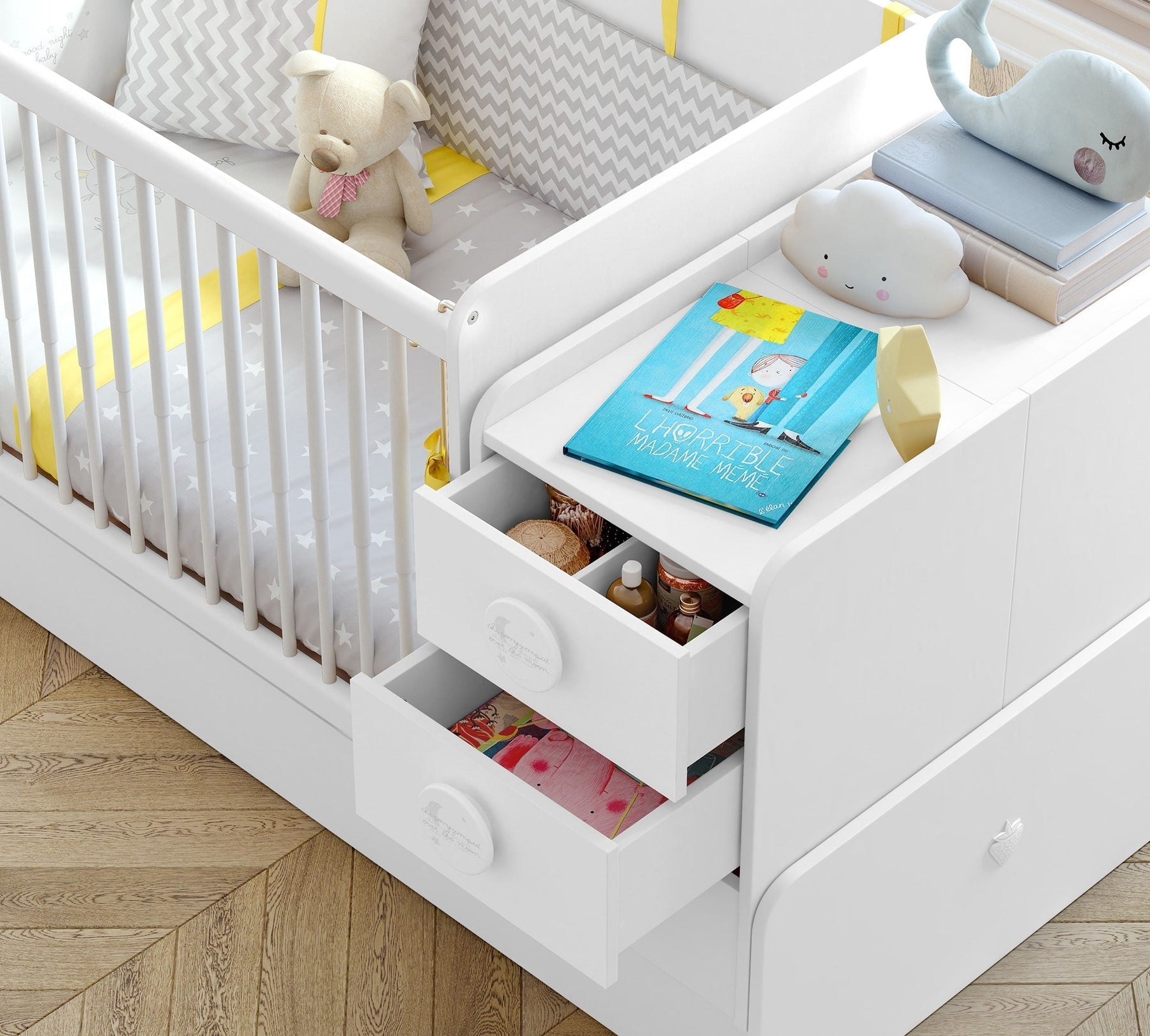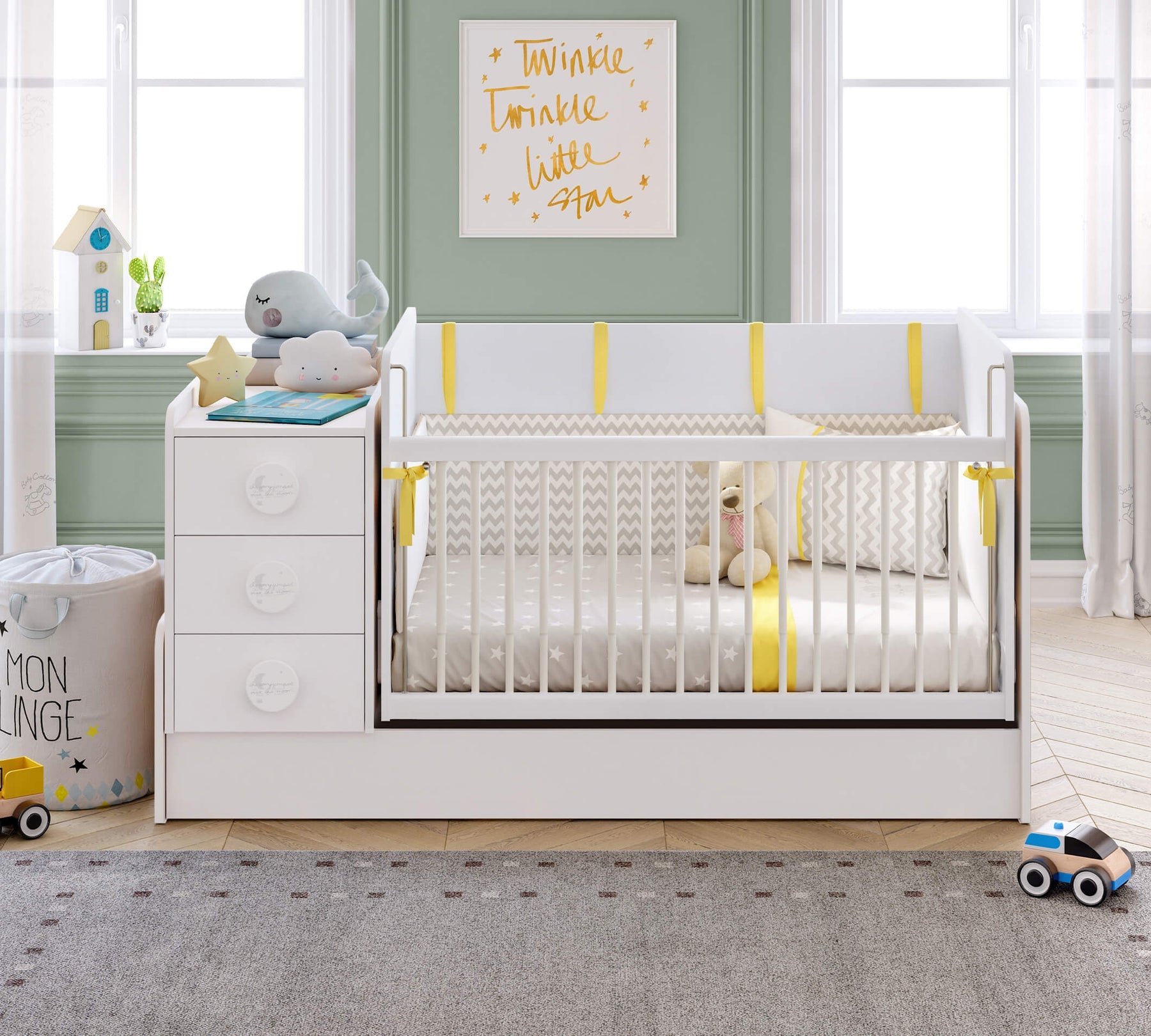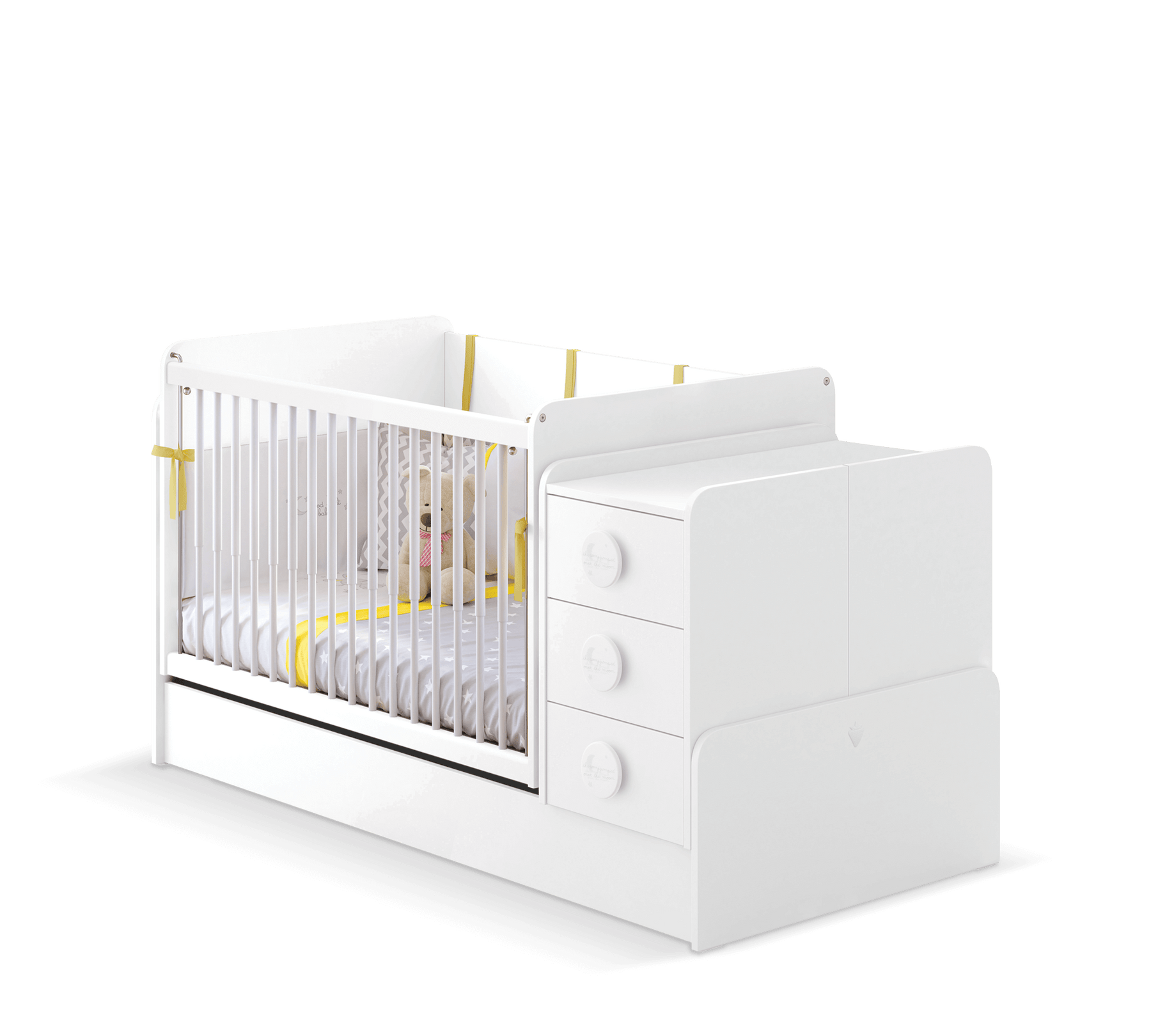 The module, designed by keeping functional features in the forefront, is facilitated by the mother's baby to reach her baby thanks to the telescobic railing railing, and the swinging apparatus can be fixed double -sided at any time. When the product is enlarged, the railing part can be used as a work desk, as a nightstand or large storage area in drawers and shelves.