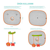 Your baby is protected from the sun's rays. The suctionus on the product allows you to easily install the product on the glass. Using your baby's ropes on the product, you can improve touch skills. In addition, there are 2 glass sunlight in the product.