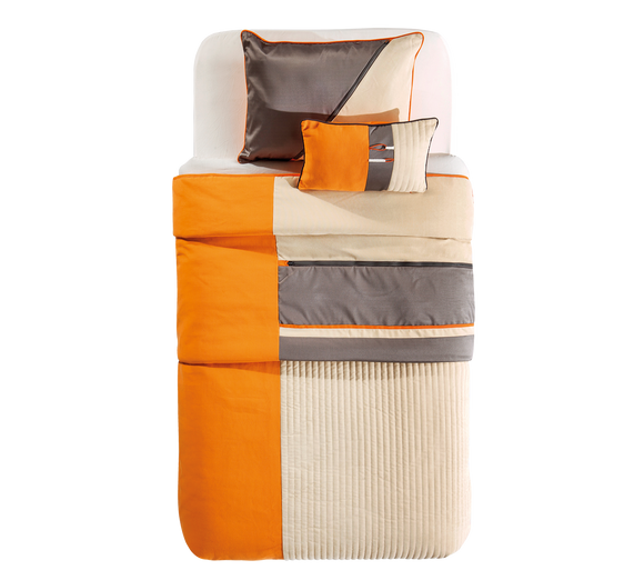 The Energy Bedspread brings liveliness to bedrooms with its design that combines anthracite and orange. Anthracite fabric has 100% polyester, orange fabric has 65% polyester and 35% cotton material. A 50x70 cm pillowcase and a 30x50 cm decorative pillow are included in the product. The bedspread with a width of 140 cm and a length of 230 cm can be used on bedsteads of 100x200 cm.