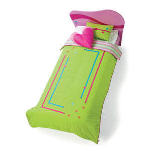 Love bedspread with patchwork design in pink and green, with matching cushion. The bedspreads decorate the children's beds providing color and warmth, completing the girls' bedroom. Alternating it with others within the variety that Cilek offers, you will transform the appearance of the bed and the space instantly.