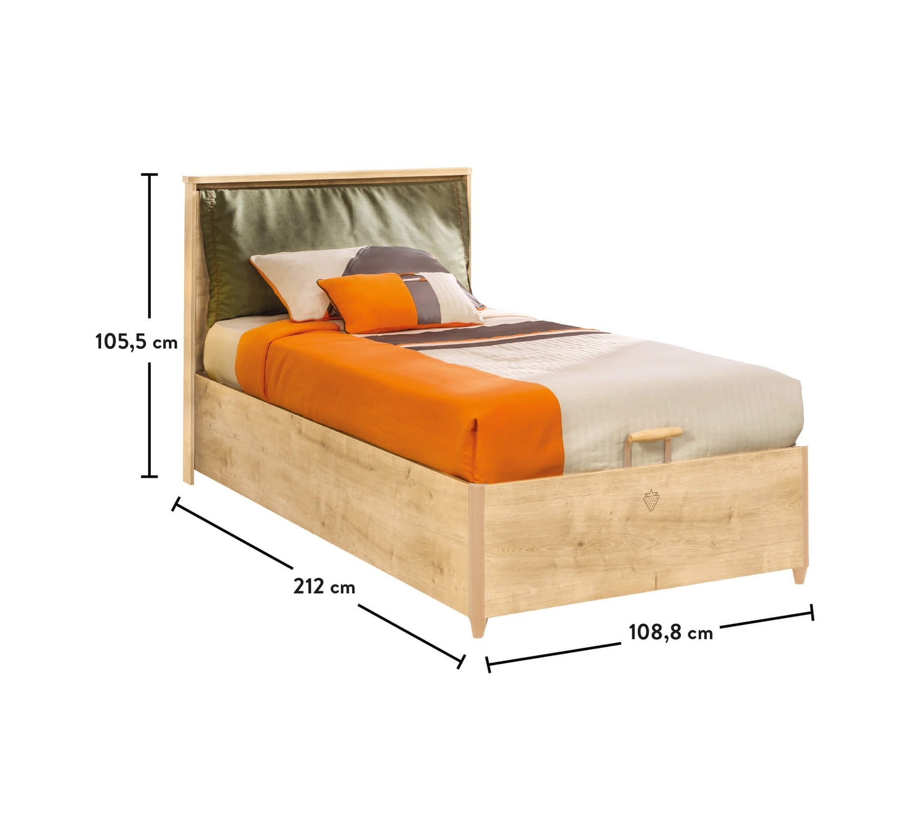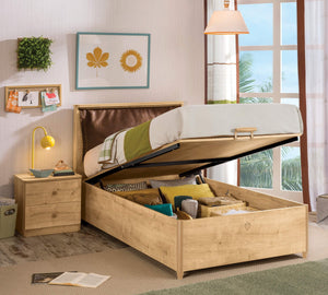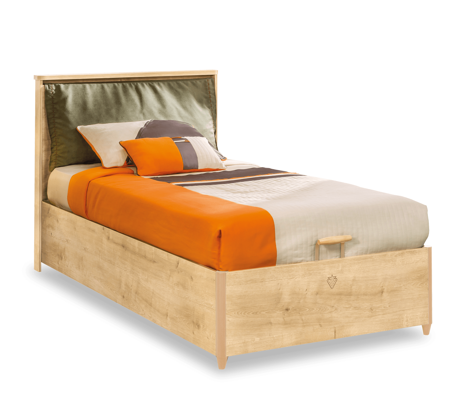 The plinth, which can be opened and closed silently with its shock absorber brake system, is also very safe against possible jams. With its large interior volume, the bed with mocha base opens extra space for the youth room. Note: Maximum carrying capacity is 130 kg.