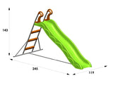 This slide provides the best sensations thanks to its waves profile. Its original design and attractive colours make it unique on the market. The sliding area in plastic with UV stabiliser is made in France, in various parts for optimised logistics. It ends in a gentle slope on ground level.