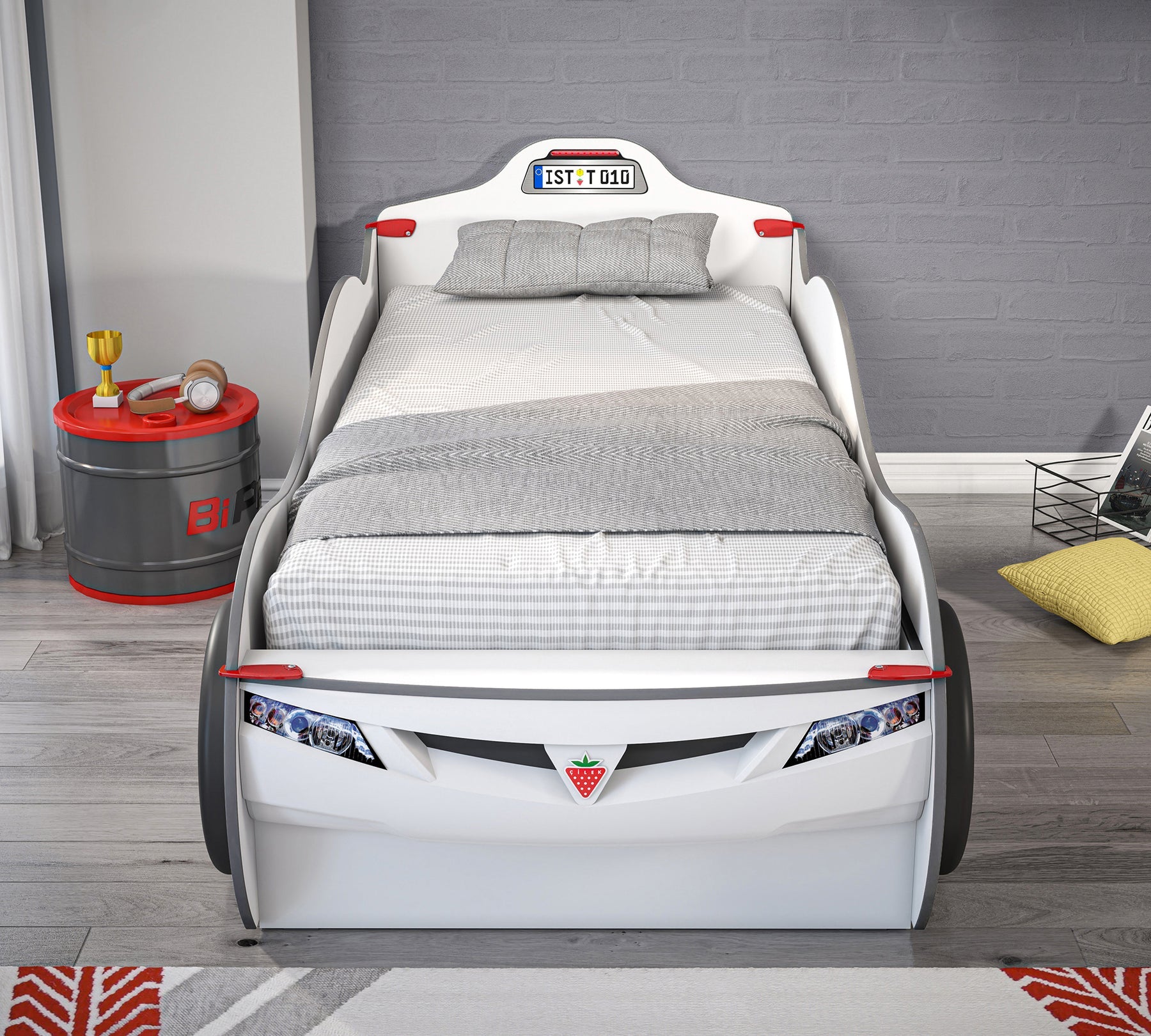 With its 3 -dimensional wheel design, the Racecup car bed, which gains a more realistic and dynamic look, attracts children's attention with its red color. Thanks to the front side of the sports, there is also a place for Co-Pilot in this bed that brings a real rally excitement to children's room designs.