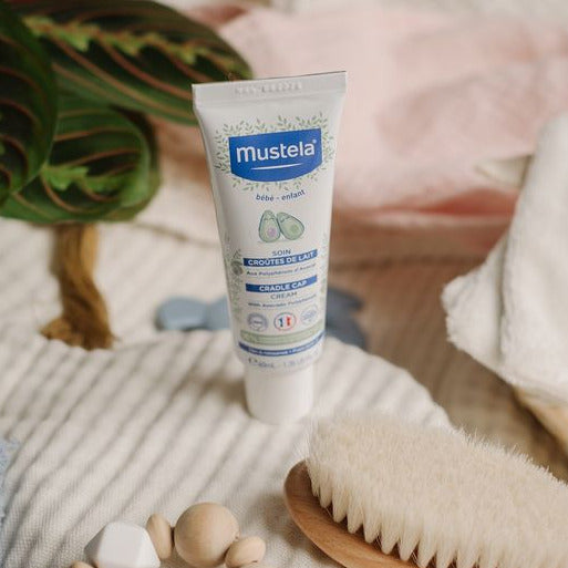 Mustela Cradle Cap Cream (Mustela Soin Croûtes de Lait) is specially formulated with avocado extract to help eliminate cradle cap and reduce the reappearance of white patches by helping regulate sebum production. Its moisturizing effect soothes the baby's itchy scalp and its light texture makes it very easy to apply.