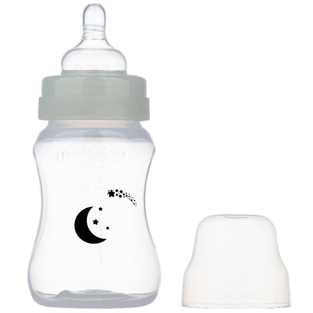 Age of Use: 6+ months It can be used for smaller/big babies by changing the teat. All mamajoo products are produced from high quality raw materials that do not contain BPA and Phthalates in our production facilities with ISO 9001; Features and Advantages: The Mamajoo Night Bottle is suitable for both day and night use, and the glow-in-the-dark closure ring makes it easy to find the bottle at night. Mamajoo Night Bottle is produced from PP (Polypropylene) raw material, which does not contain substances unsuitable for the health of babies and is allowed to be used in bottle production in Turkey, Europe and the USA. The anti-colic valve system in the Mamajoo Night Bottle teat helps to prevent gas pain (colic) caused by the baby swallowing air during feeding. It has a wide base for a balanced stance, and gripping curves on the body for easy holding of little hands. The caps of Mamajoo Night Bottles are specially designed for the placement of the teat. Since the caps of Mamajoo Night Bottles completely cover the teat, they provide absolute tightness in use and transportation. The scale marks on the bottle also make sure how much the baby is fed. The Mamajoo Night Bottle Teat, which is presented in a form similar to the mother's breast, stretches like a mother's breast thanks to the spirals on it. The wide-mouth Mamajoo Night Bottle is easy to fill and clean, and it won't tip over easily thanks to its wide base. Ergonomic gripping curves are designed on the body of the Mamajoo Night Bottle in order for little hands to hold it easily and to support muscle development. The tasteless and odorless Mamajoo Night Bottle Teat makes it easy to combine breastfeeding and bottle feeding. There are 4 types of Mamajoo Teats with different liquid flow rates to be used with the bottle, in accordance with the development and needs of the babies.