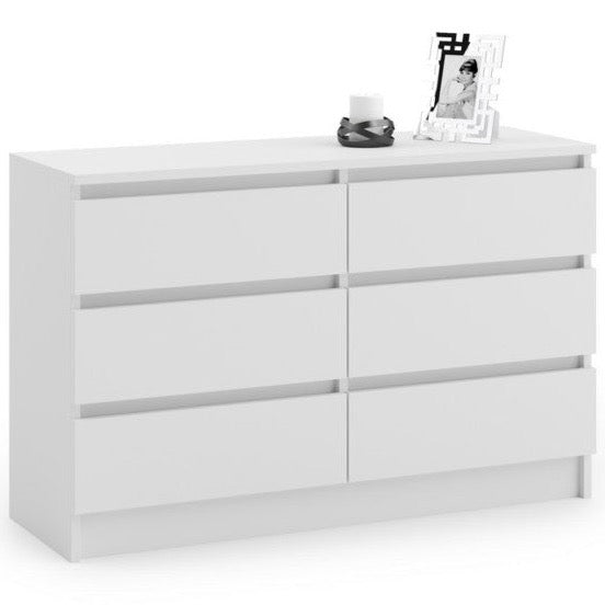 • chest of drawers in a modern style will renew any interior. Ideally suited to the living room, bedroom, hall or children's room as a functional and roomy piece of furniture. Simple shapes and applied fronts without handles give elegance to the whole structure. Drawers on roller guides with a pull-out lock guarantee comfortable and safe use.