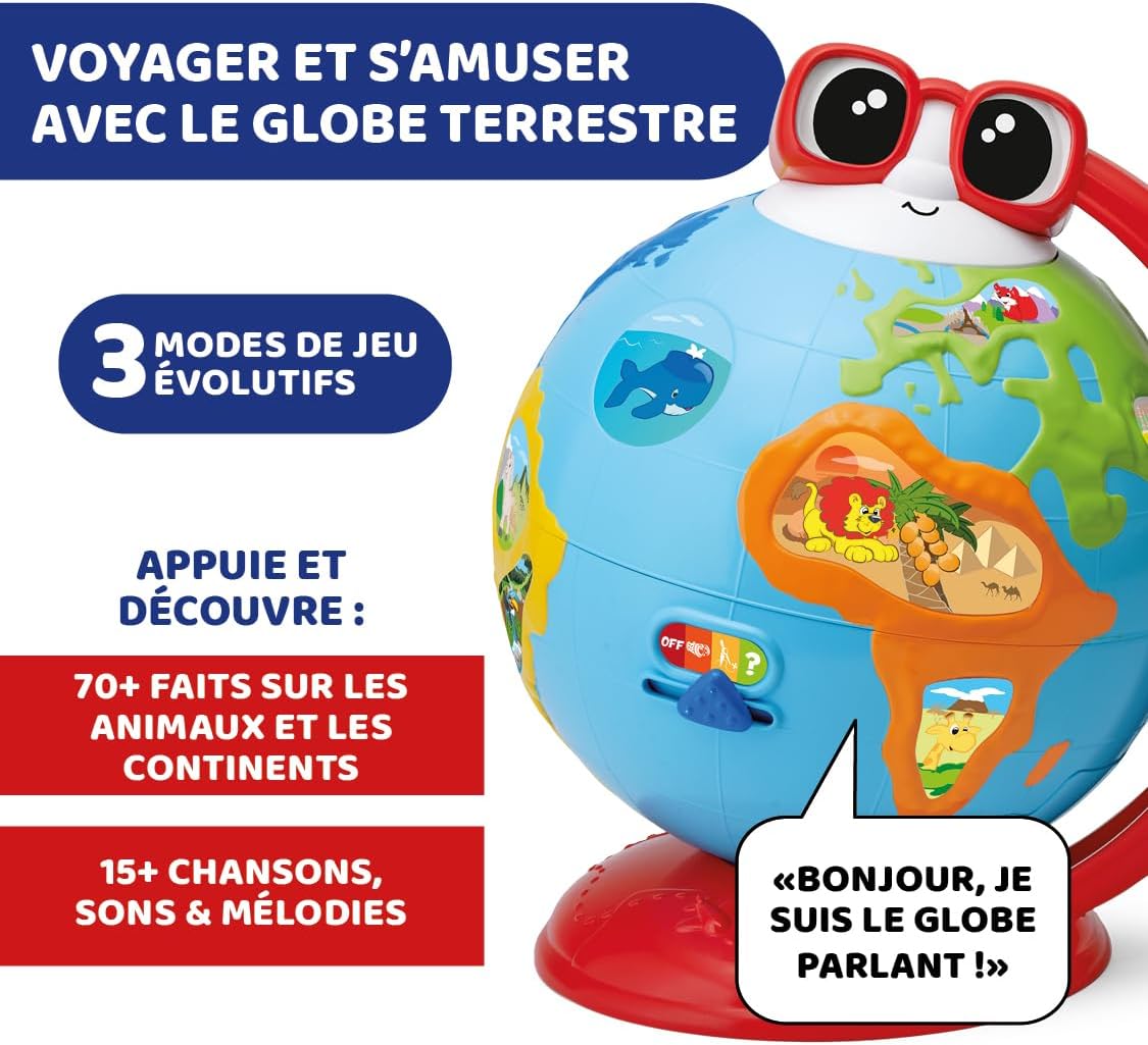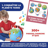 • CONTENU INTERACTIF : Edu Globe permet à vos enfants de découvrir des continents, des animaux exotiques, des monuments impressionnants et des moyens de transport, avec plus de 300 contenus, des chansons et 12 boutons interactifs