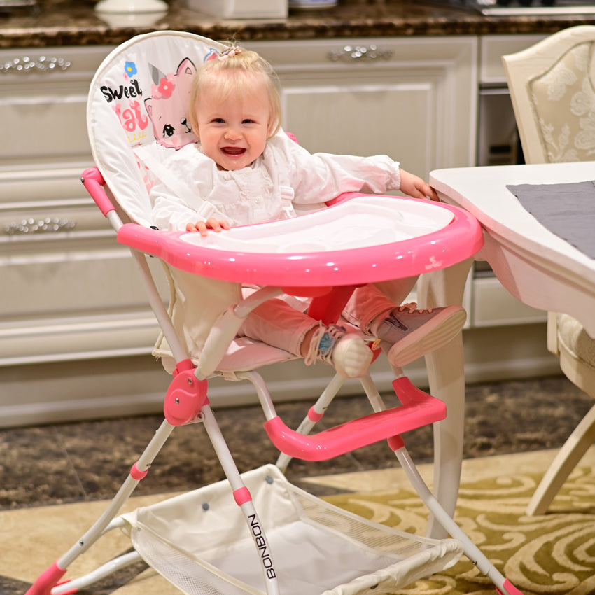 Comfortable and practical – this is the high chair for the selection of which your child would have surely said “Bravo!” if it could do this. Compact design, fresh colours and prints – those are only the first impressions about the model. Practicality has been designed with sufficient thinking of both of you and the little culinary expert - the high chair has PVC coating for easy cleaning and two trays, while the upper one is removable both for cleaning and to turn the high chair into a “desktop” for the little child to play. The model folds and unfolds easily and child’s safety is ensured by safety belts. The comfort of eating is guaranteed by the special compartments for either a mug or a bottle on the tray. For your convenience the model has a basket for accessories, especially practical for children with low appetite who demand serious amusements to be persuaded to eat.