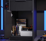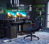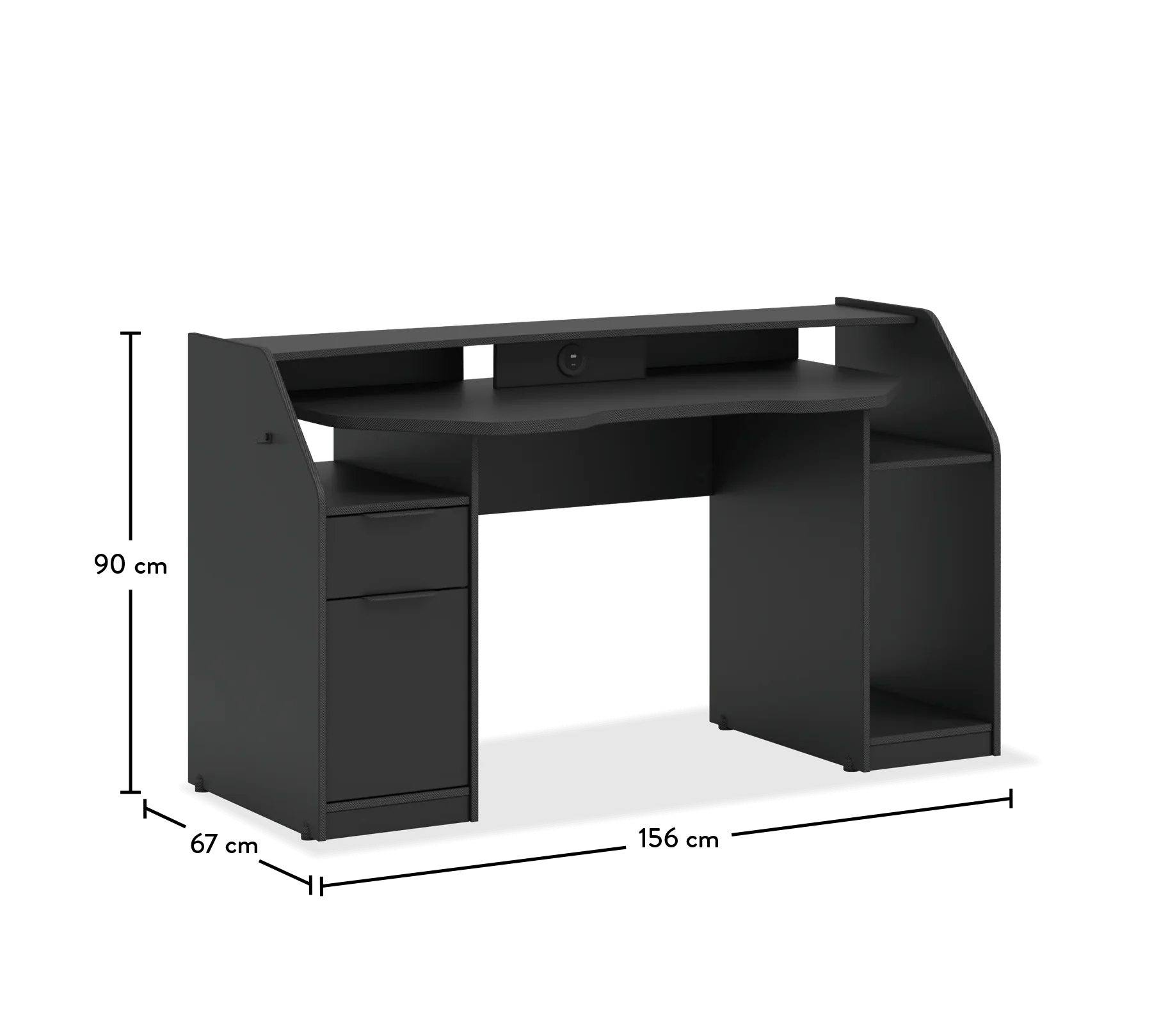 Gaming Desk Black allows you to be more comfortable while playing games and sit closer to the table thanks to the table top that supports your arms and wrists. It offers the freedom to create your own space with its space where you can place two or three monitors, one drawer, two open shelves, one usb port and hanger. The Gaming Table, which provides usage functionality thanks to its 156x90x67 cm dimensions, adds a new dimension to increase gaming performance.