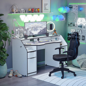 Gaming Desk Black allows you to be more comfortable while playing games and sit closer to the table thanks to the table top that supports your arms and wrists. It offers the freedom to create your own space with its space where you can place two or three monitors, one drawer, two open shelves, one usb port and hanger. The Gaming Table, which provides usage functionality thanks to its 156x90x67 cm dimensions, adds a new dimension to increase gaming performance.