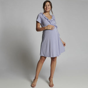 • Special v-neck dress with belt under the breast for pregnant women. The front is short and the back is long. It provides a more fit appearance thanks to the shirring under the breasts. Thanks to its comfortable and stylish model, you can easily use it for a long time both during and after pregnancy.