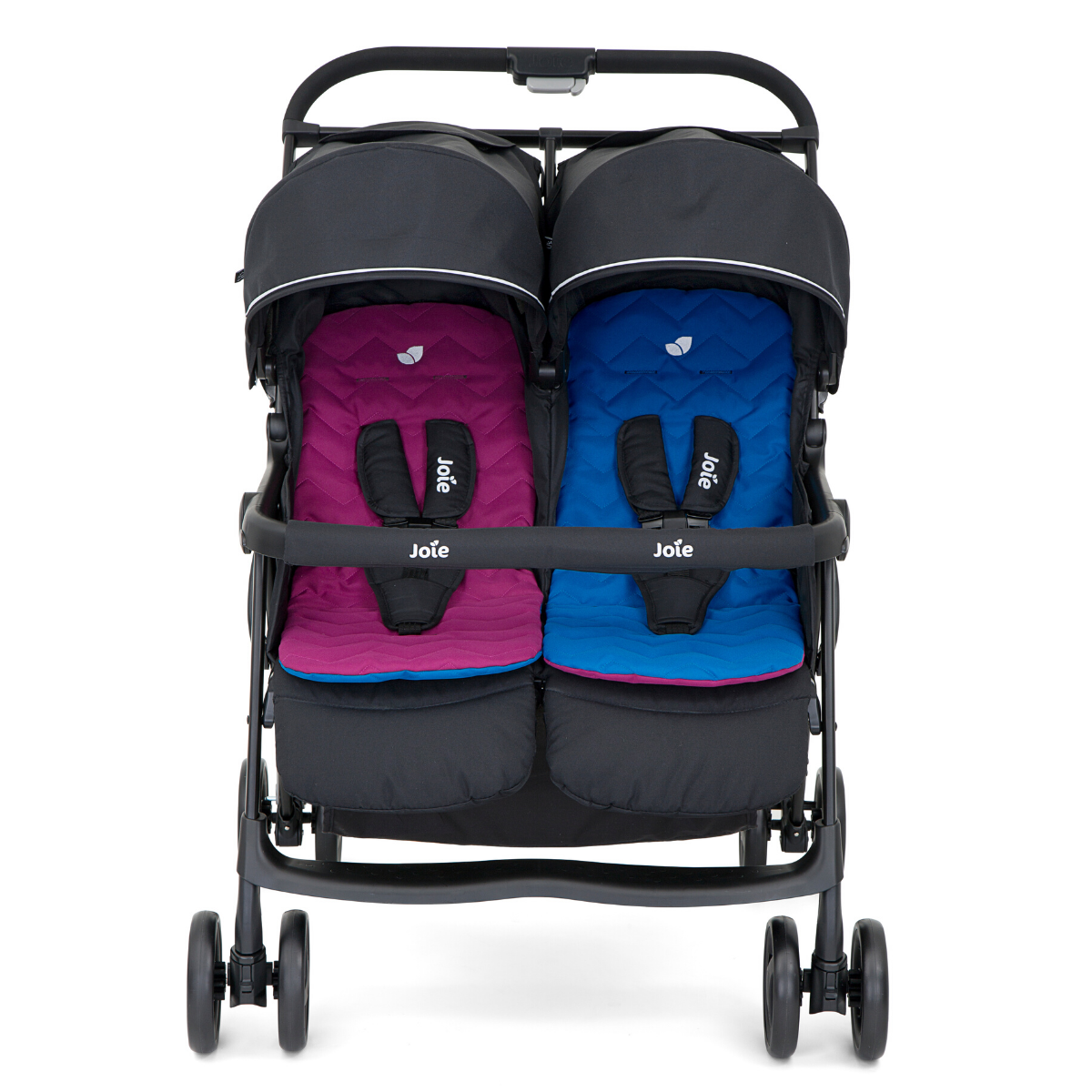 Fun and flexible – includes two reversible seat liners plus individual canopies, keeping baby cushioned and the stroller protected. The seat also reclines which means both babies stay cosy – even if they’re on opposite schedules.